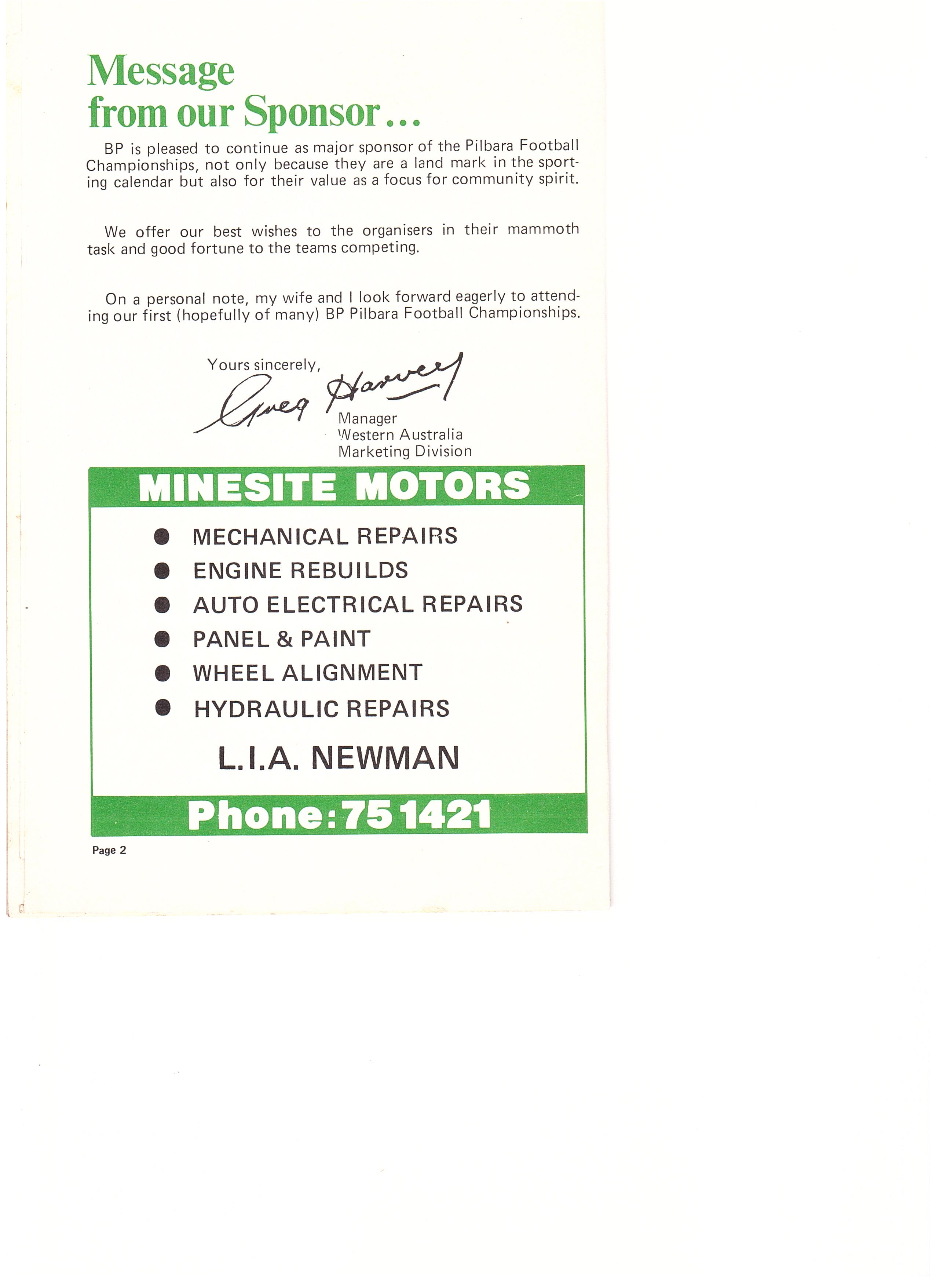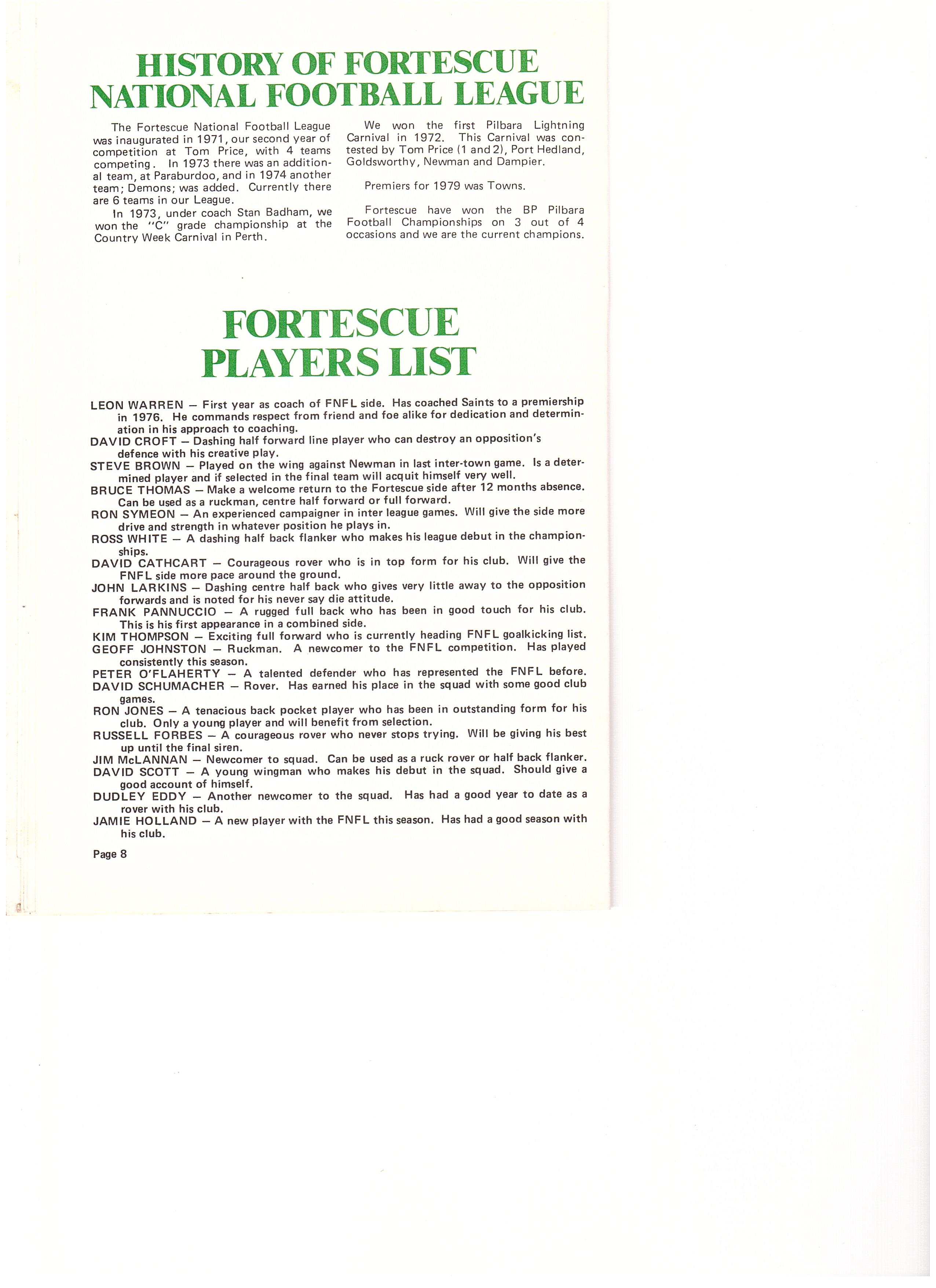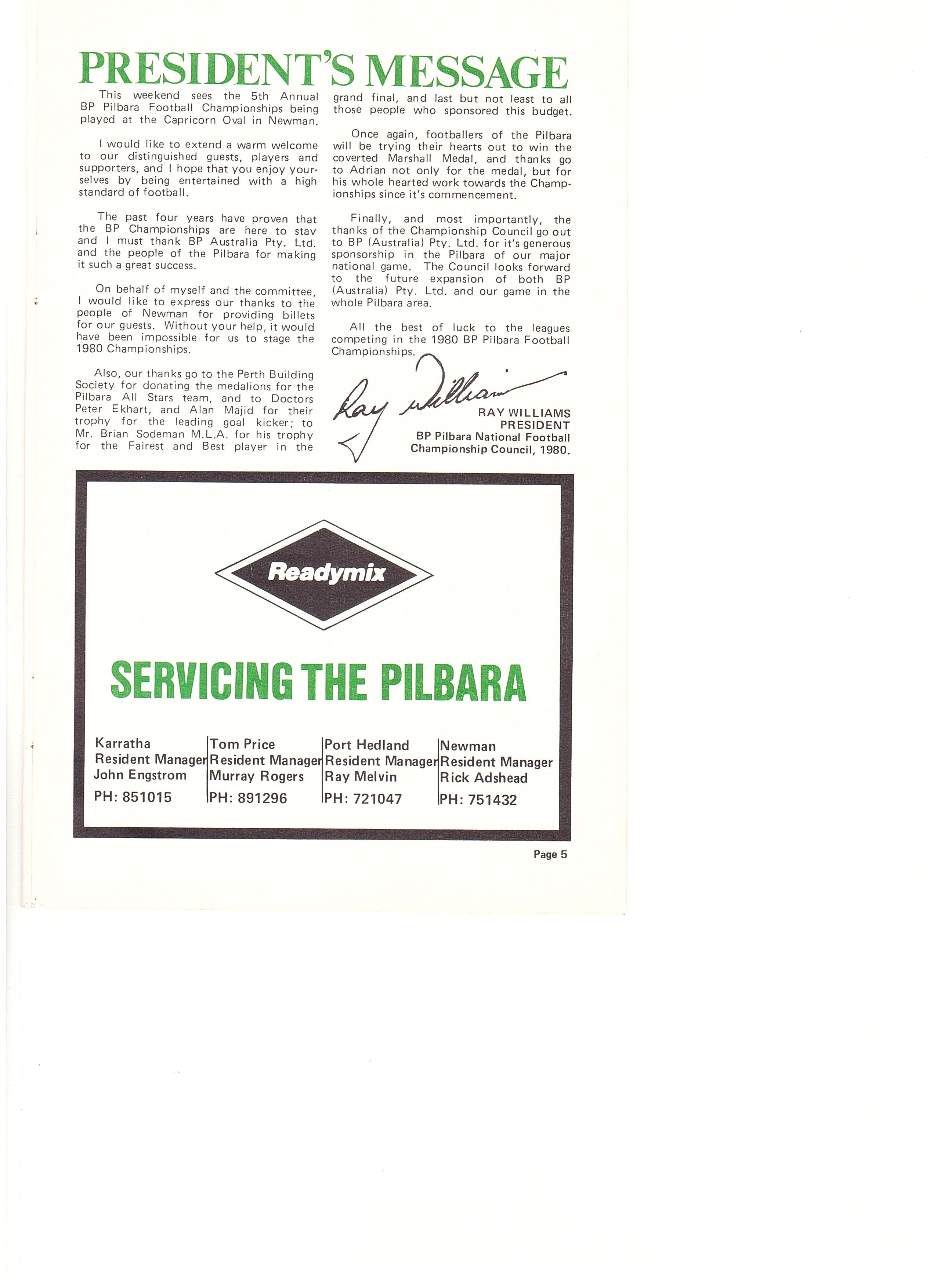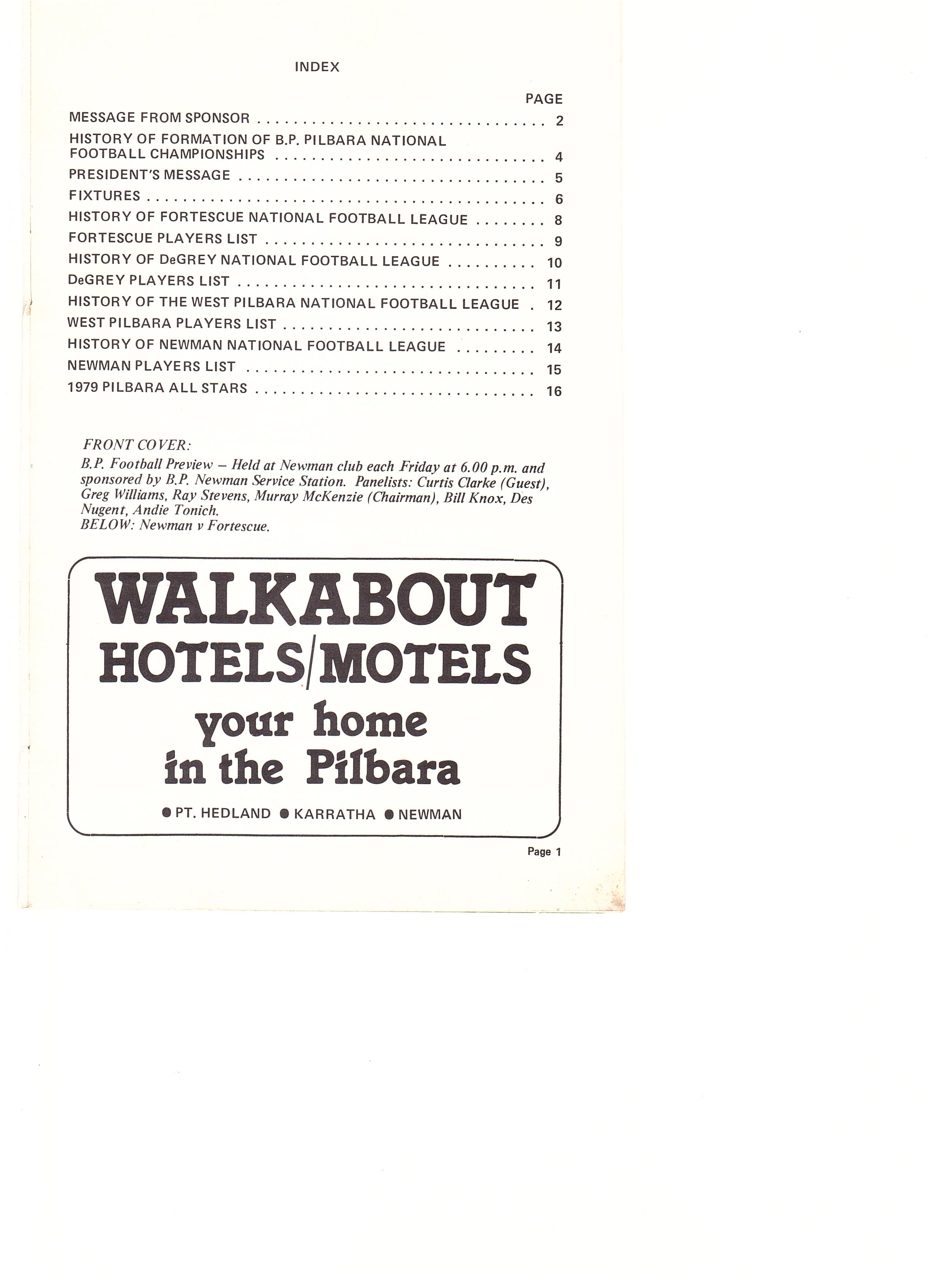 The history of the Inaugural BP Pilbara National Football Championships is typical of the dramatic rapidly changing scene in the Pilbara over the last decade, the idea was there, correspondence began exchanging about 1973, but when a meeting was actually called and plans formed, the beginning of the championships and council advanced on a scale not previously envisaged.