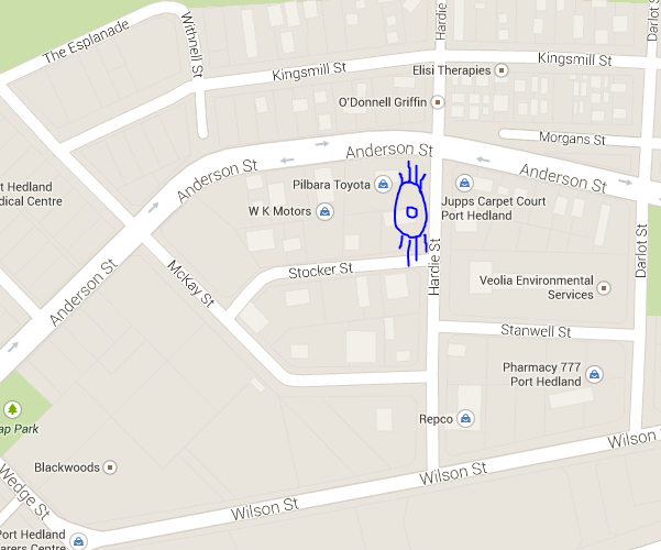 According to long term Pilbara resident Mickey Dann, Port Hedland’s first football oval was located on Hardie Street, where Port Hedland Toyota’s workshop is now, opposite Jupps Carpet Court.