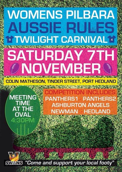 This weekend on Saturday 7 November 2015, a twilight carnival will be held at Colin Matheson Oval, Tinder Street, Cooke Point.