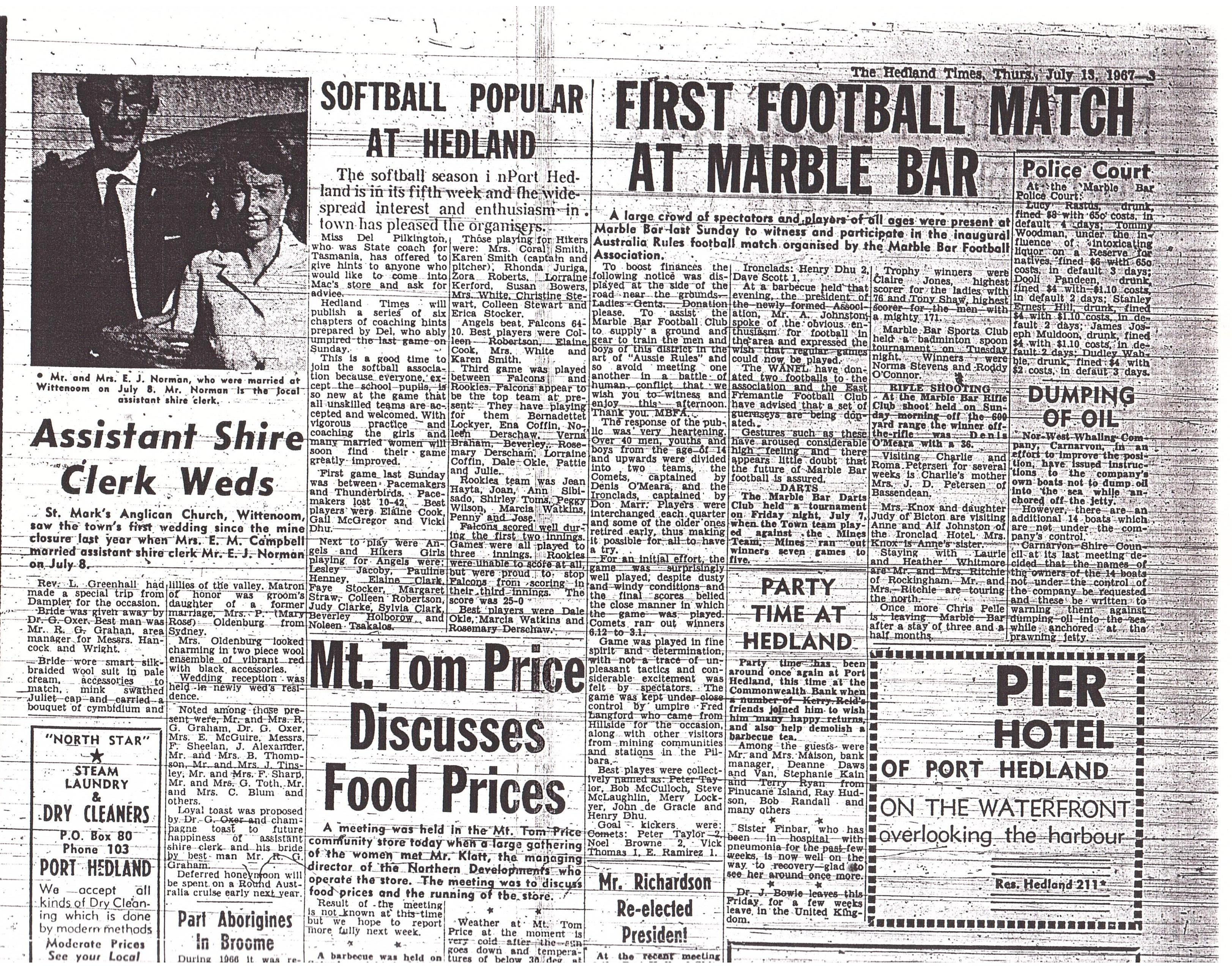 The inaugural Australian Rules Football match was played in Marble Bar on 9 July 1967.